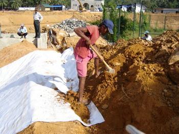 3、利用土工布增強土體的抗拉強度和抗變形能力,增強建筑結(jié)構(gòu)的穩(wěn)定性,以改善土體質(zhì)量。