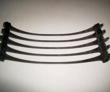 單向拉伸塑料土工格柵是一種高密度聚丙烯(PP)或聚乙烯(HDPE)為主要原料,加入一 定的防紫外線、抗老化助劑,經(jīng)過(guò)單向拉伸使原來(lái)分布散亂的鏈形分子重新定向排列呈線性狀態(tài),經(jīng)擠出壓成薄板再?zèng)_規(guī)則孔網(wǎng),然后縱向拉伸而成的高強(qiáng)度土工材料。這種過(guò)程中使高分子成定向線性狀態(tài)并形成分布均勻、節(jié)點(diǎn)強(qiáng)度高的長(zhǎng)橢圓形網(wǎng)狀整體性結(jié)構(gòu)。此種結(jié)構(gòu)具有相當(dāng)高的拉伸強(qiáng)度和拉伸模量,抗拉強(qiáng)度達(dá)到100-200Mpa,接近低碳鋼的水平,大大優(yōu)于傳統(tǒng)的或現(xiàn)有的加筋材料,特別是我公司此類產(chǎn)品更具有超國(guó)際水平的高早期(伸長(zhǎng)率在2%—5%)拉伸強(qiáng)度和拉伸模量。給土壤提供了理想的力的承擔(dān)和擴(kuò)散的連鎖系統(tǒng)。該產(chǎn)品拉伸強(qiáng)度大(>150Mpa),適應(yīng)各種土壤,是目前廣為采用的加筋加固材料。