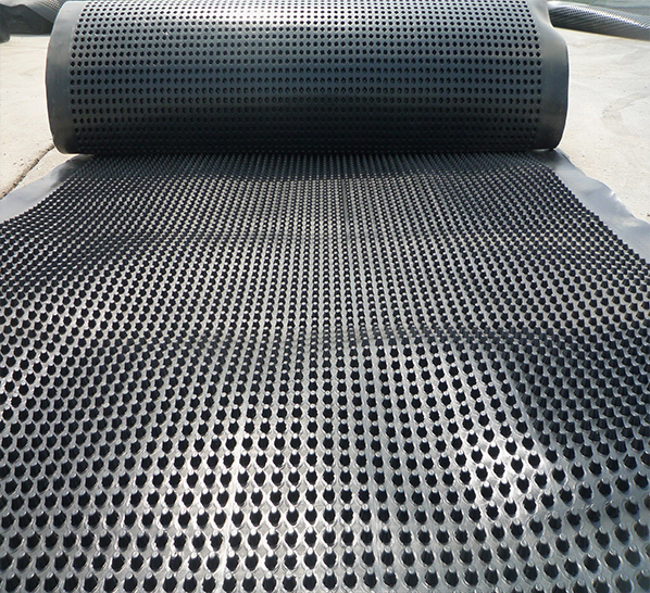 圓錐突臺(tái)的頂面膠接一層過濾土工布,以阻止泥土微粒通過,從而避免排水通道阻塞使孔道排水順暢。 傳統(tǒng)的排水方式使用磚石瓦塊作為導(dǎo)濾層、使用較多的鵝卵石或碎石作為濾水層、將水排到指定地點(diǎn)。而用排水板取代鵝卵石濾水層來排水則省時(shí)、省力又節(jié)能、節(jié)省投資、還能降低建筑物的荷載。