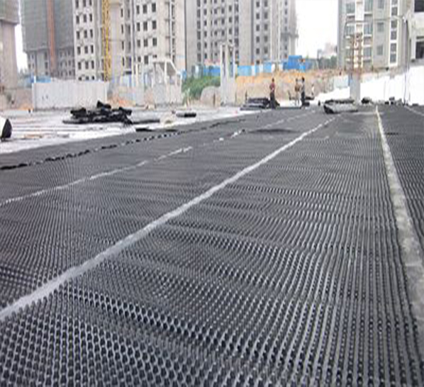 良好的排水系統(tǒng)對土建的施工周期及構(gòu)筑物的正常使用和壽命具有重要的作用。排水板與多孔滲水管組成一個(gè)有效的疏排水系統(tǒng),圓柱形的多空排水板與土工布也組成一個(gè)排水系統(tǒng),從而形成一個(gè)具有滲水、貯水和排水功能的系統(tǒng)